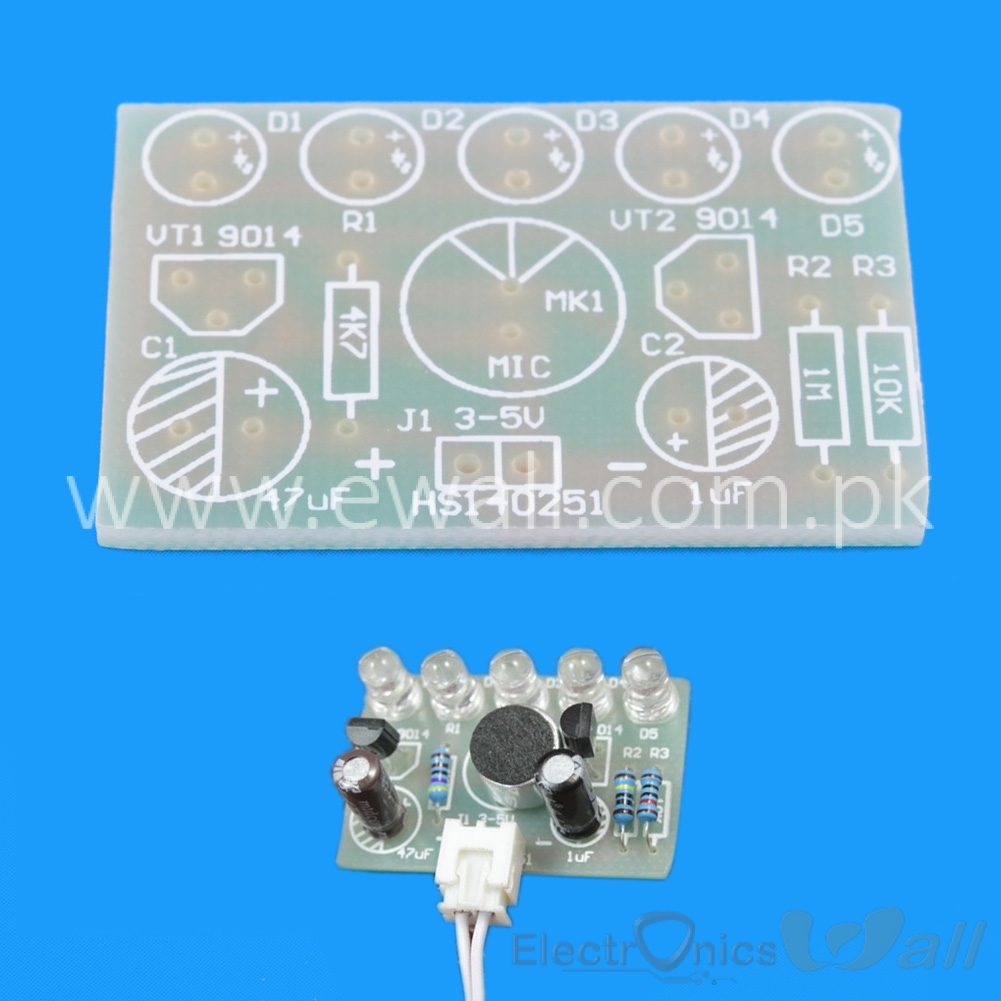 - This kit includes power circuit, microphone amplifier circuit and led circuit